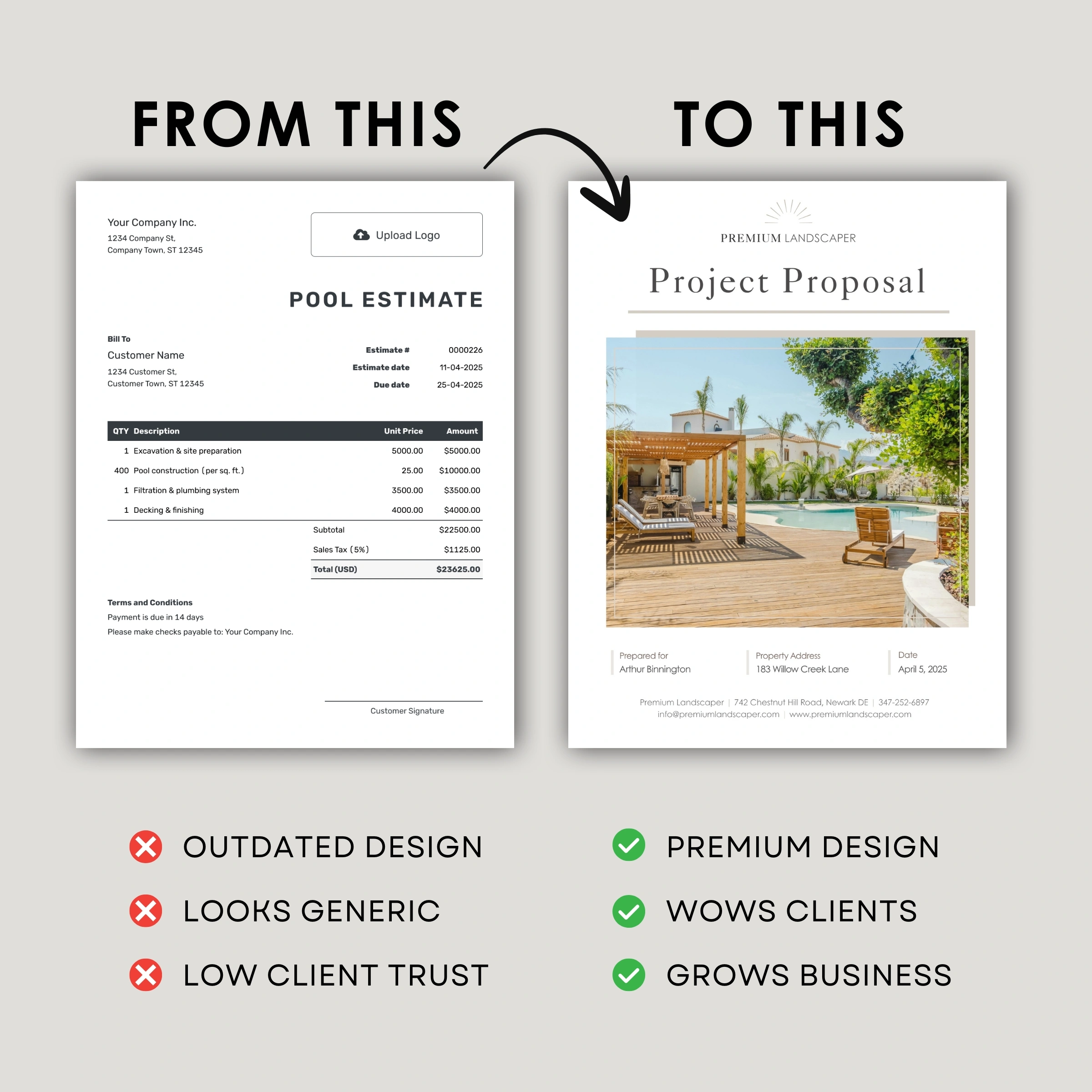 If your paperwork looks generic, clients assume your workmanship will be the same, meaning lower close rates, more price pushback, and less referrals.